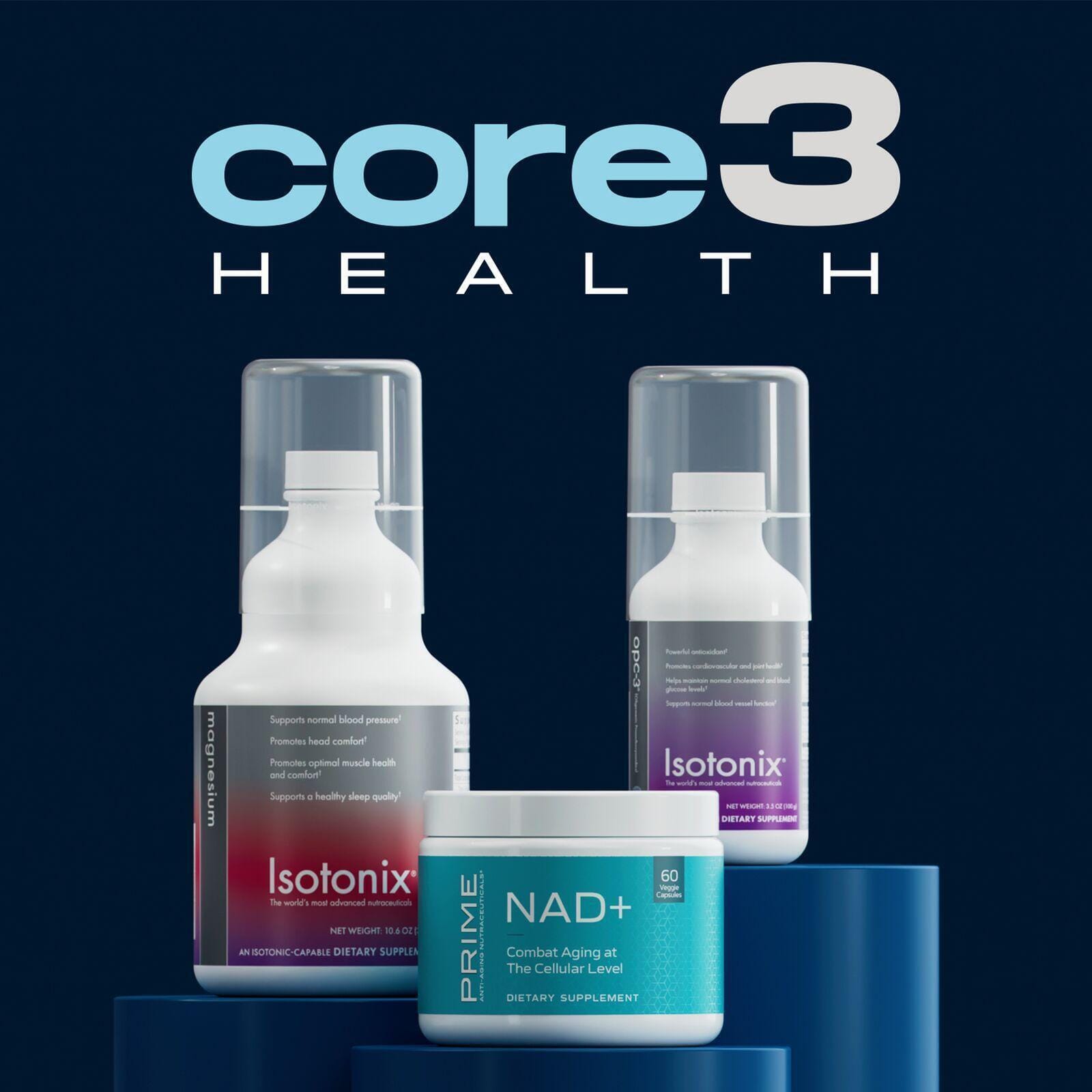 The journey to unlocking your body's full potential doesn't have to be complicated. Core3 Health's top-tier supplements, Isotonix OPC-3, Prime NAD+, and Isotonix Magnesium, offer a streamlined path to enhanced wellness, each with its own unique benefits that cater to different aspects of your health.